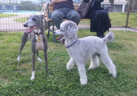 そのあと徐々に小型犬用ランに居た子達が移動してきて、あっという間に賑やかに。