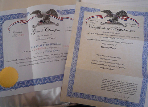 レジストの証書が届いたので、すぐグランドチャンピオンの
